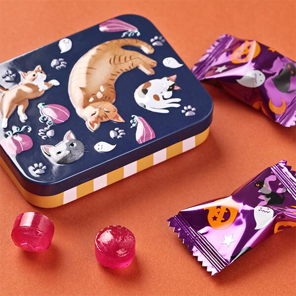 ハロウィンネコオーバル缶 価格:各475円(税込)